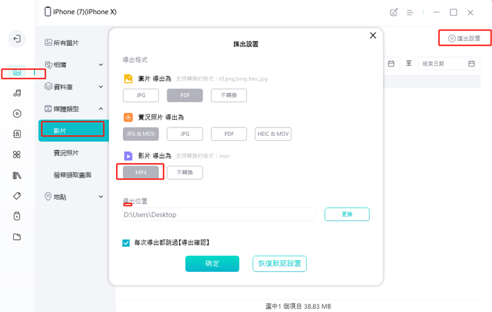 步驟3:點擊右上角的「匯出設置」後,你就可以選擇想要轉換的格式,並選擇獎圖片匯出為「PDF」。