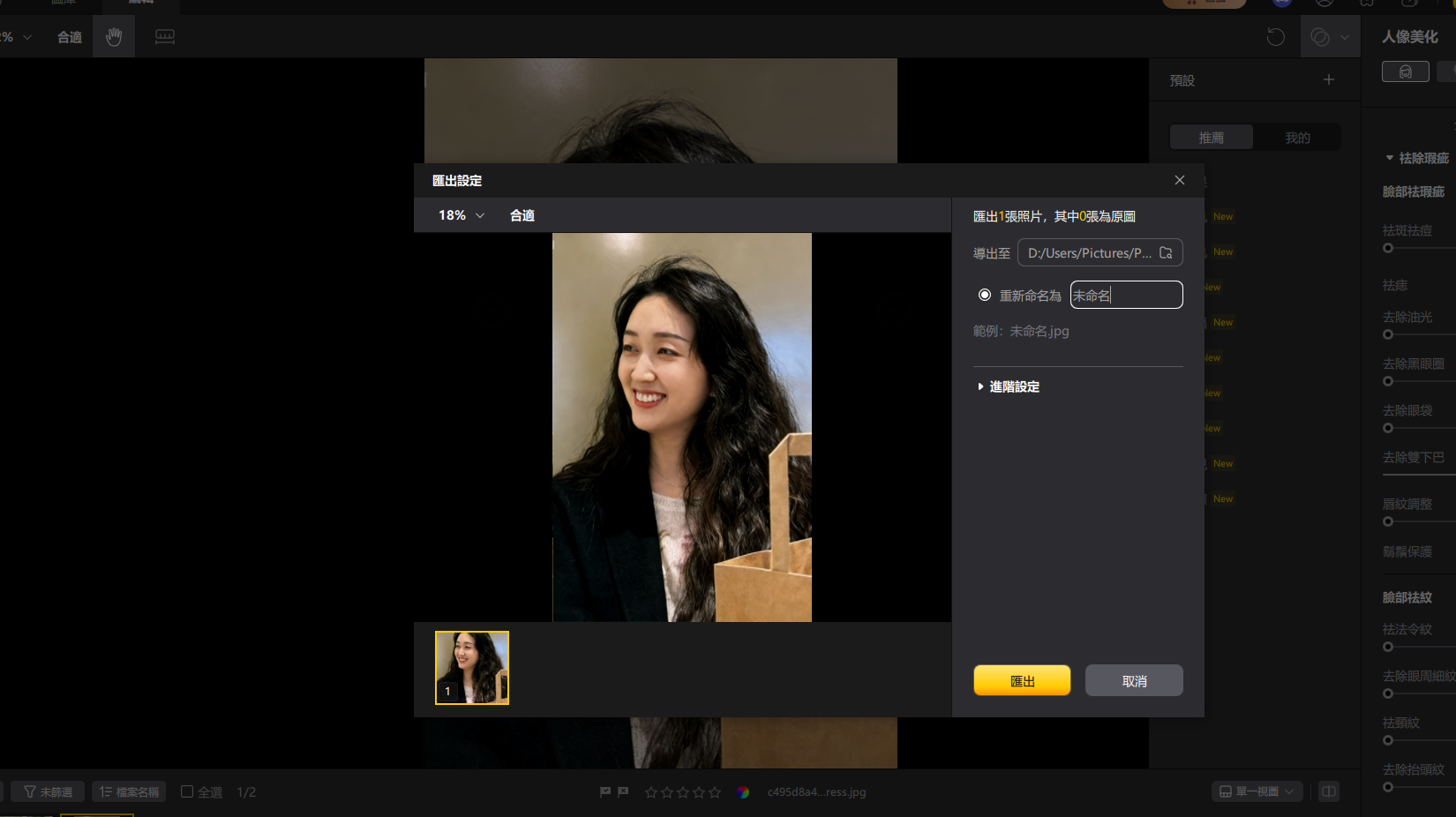 啟動pixpretty後,首先選擇並匯入有雙下巴問題的照片。正面到稍微側面的照片,AI較容易準確辨識整張臉,修正精度也比較穩定。