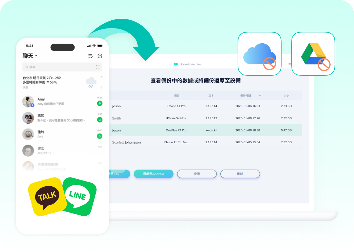 支援!我們是您 LINE 數據搬家的最佳夥伴。無論是 iOS 轉 Android、Android 轉 iOS,還是同系統的換機(Android 轉 Android、iPhone 轉 iPhone),iCareFone for LINE 都能讓您的 LINE 數據完整轉移,告別換機煩惱。